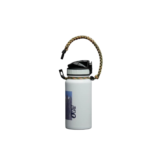 Fabriquée en acier inoxydable 100 % recyclé, elle allie résistance, durabilité et respect de l’environnement. Son bouchon étanche assure une parfaite protection, tandis que sa poignée en paracorde de 3 mètres (lorsqu’elle est dépliée) offre une polyvalence maximale lors de vos sorties.