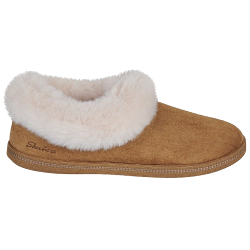 Ce chaussons décontracté est doté d’une tige douce en tissu microfibre avec une texture similaire à du suède avec doublure en fourrure synthétique et d’une semelle intérieure coussinée Skechers en mousse à mémoire de forme.
