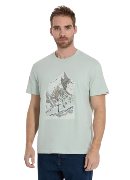 Avec le t-shirt “Sevis” de chez Ragwear, l’imprimé large du téléski capture la magie d’une journée parfaite en montagne.